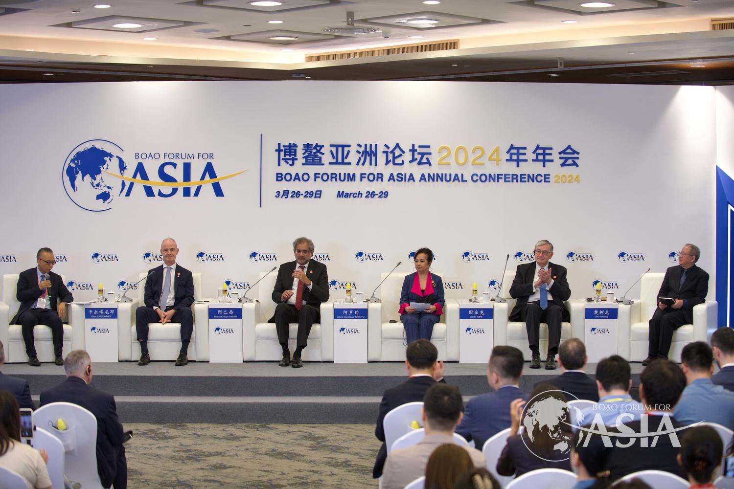 International politicians, representatives, and scholars attend a panel discussion on the global geopolitical outlook during the Boao Forum for Asia Annual Conference 2024 in Boao, south China's Hainan Province, March 27, 2024. (Photo Credit: Boao Forum for Asia)