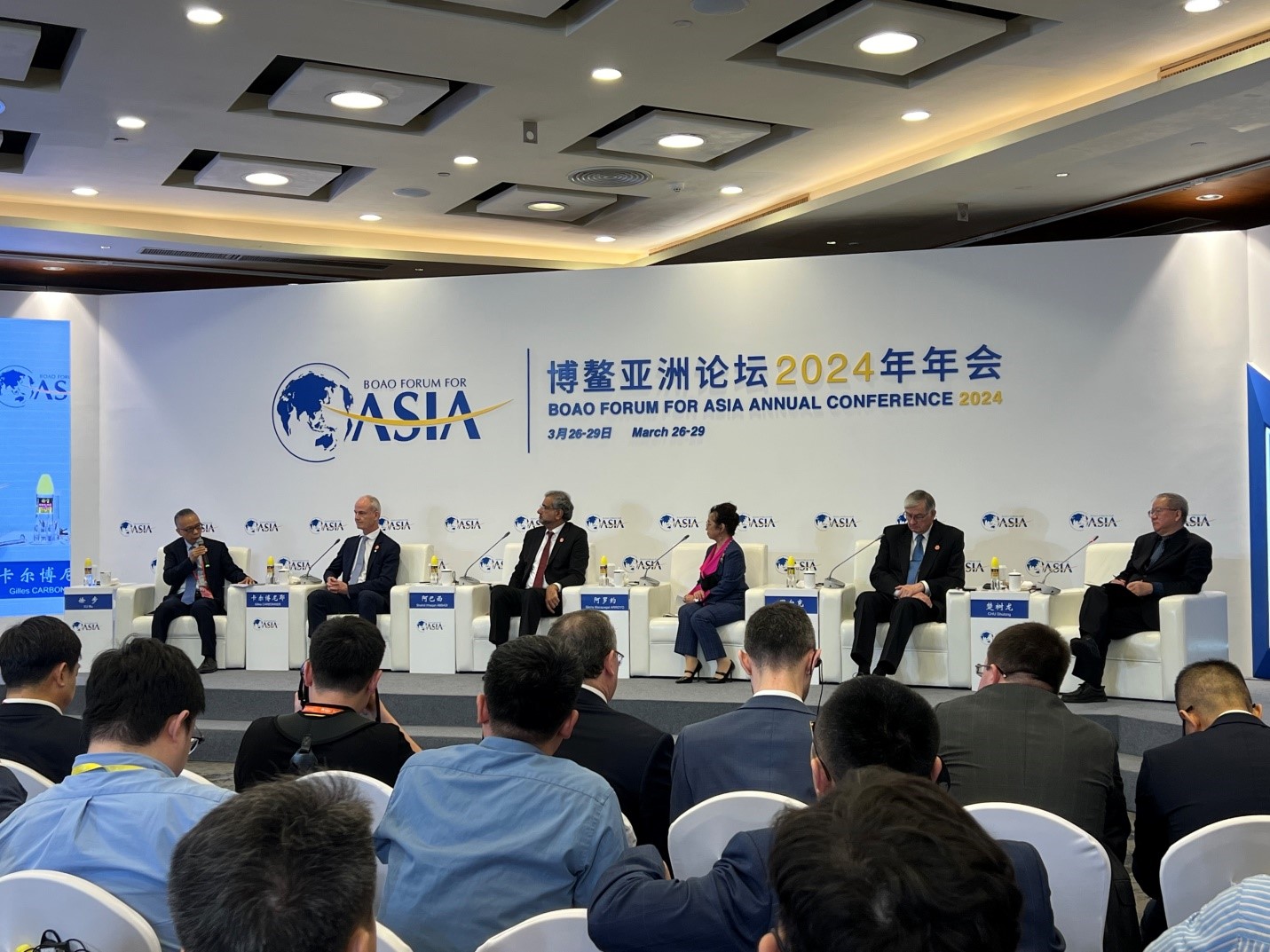 Danilo Türk (second, right), former president of Slovenia and current president of The Club of Madrid participates as a panelist at A Global Geopolitical Outlook sub forum under the Boao Forum for Asia Annual Conference 2024 in Boao, south China’s Hainan Province, March 27, 2024. (Photo/People’s Daily Online)