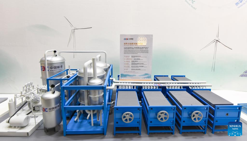 A model of a square modular alkaline electrolyzer is displayed at an exhibition area during the Boao Forum for Asia (BFA) Annual Conference 2024 in Boao, south China's Hainan Province, March 27, 2024. The BFA Annual Conference 2024 was held from March 26 to 29 in Boao, with a series of consensus reached.