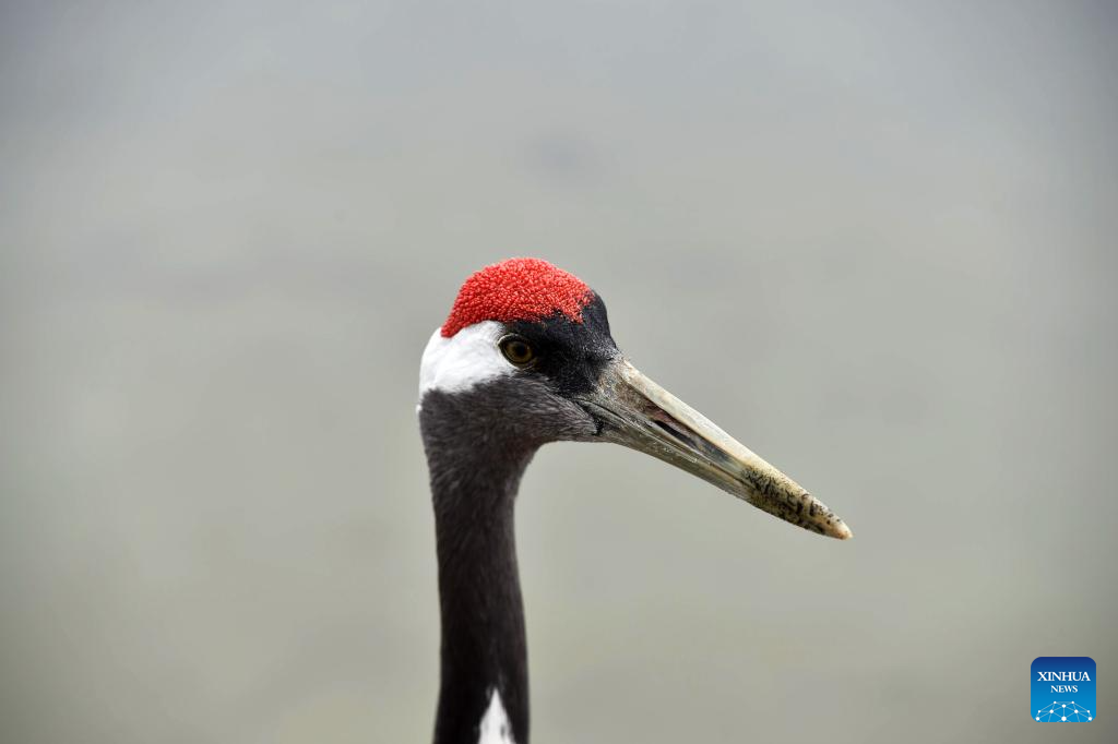 A red-crowned crane is seen at Zhalong National Nature Reserve in Qiqihar, northeast China's Heilongjiang Province, March 29, 2024. Zhalong National Nature Reserve provides a major habitat for red-crowned cranes and other wildlife. (Xinhua/Ding He)