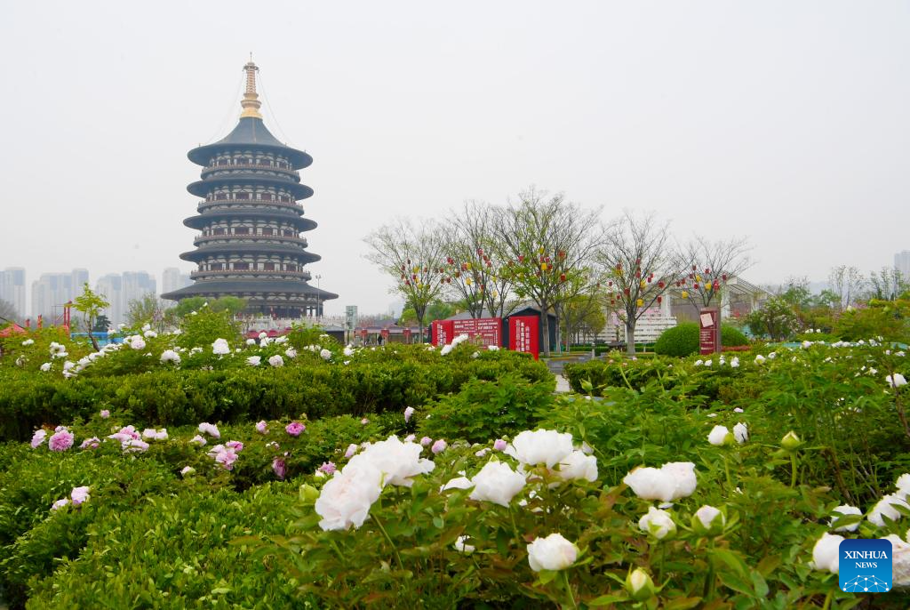 This photo shows peonies at the National Archaeological Site Park of Sui-Tang Luoyang City in Luoyang City, central China's Henan Province, April 2, 2024. (Xinhua/Hao Yuan)