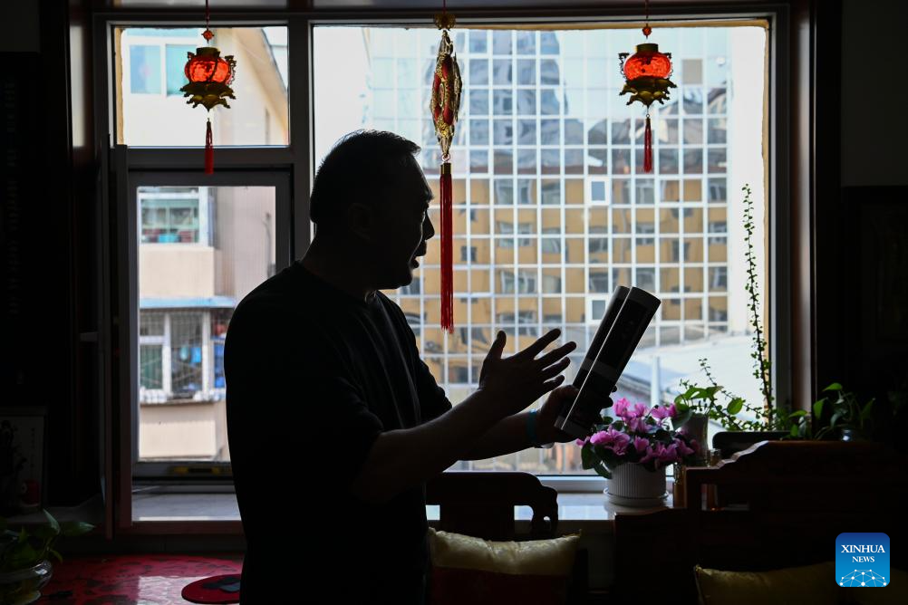 Wu Lingyun prepares for performances at home in Xinghualing District of Taiyuan, north China's Shanxi Province, March 26, 2024. (Xinhua/Yang Chenguang)