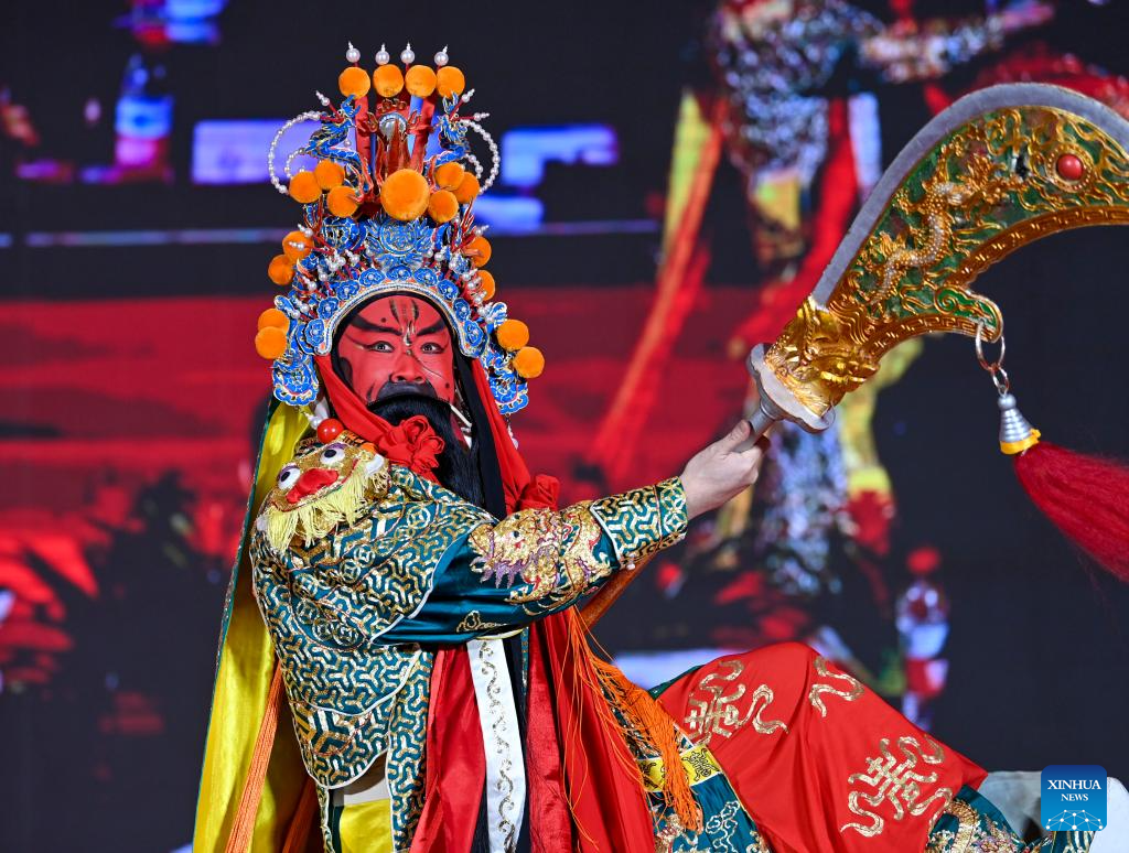 Wu Lingyun (C) stages a performance in Yingze District of Taiyuan, north China's Shanxi Province, Feb. 23, 2024. (Xinhua/Zhan Yan)