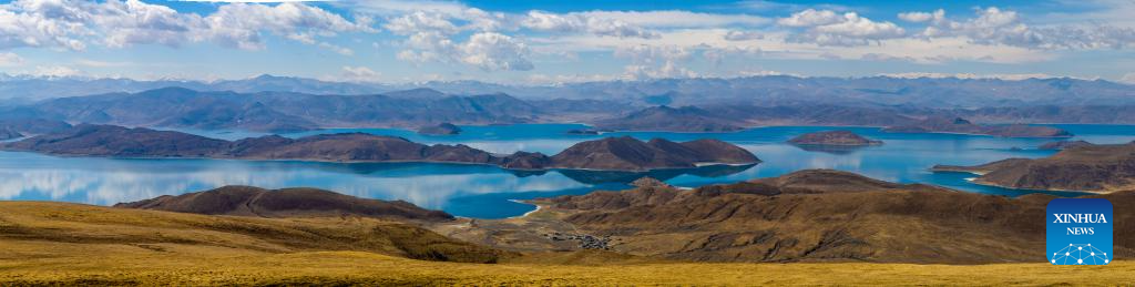 This stitched photo taken on April 5, 2024 shows scenery of the Yamzbog Yumco Lake in southwest China's Xizang Autonomous Region. (Xinhua/Jiang Fan)