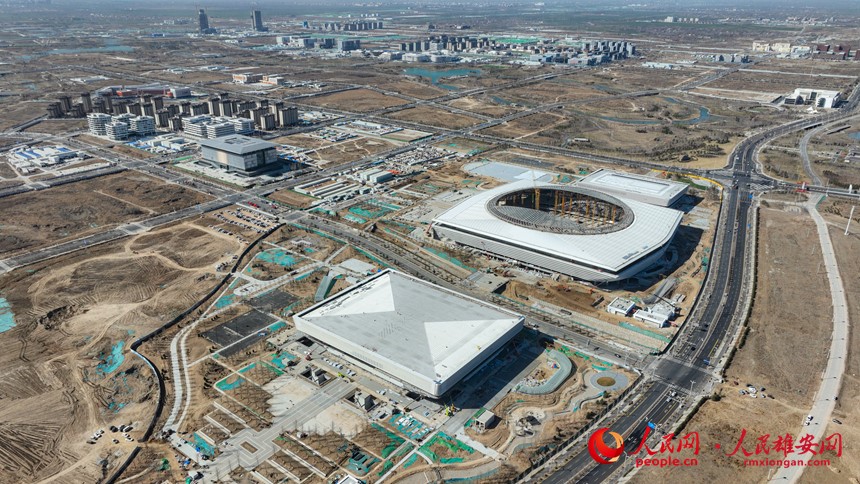 Photo shows the Xiong'an sports center under construction. (People's Daily Online/ Li Zhaomin)