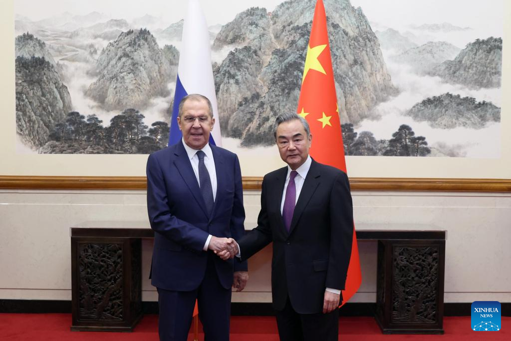 BEIJING, April 9 (Xinhua) -- Chinese Foreign Minister Wang Yi held talks with Minister of Foreign Affairs of the Russian Federation Sergey Lavrov in Beijing Tuesday, and both sides expressed hope for strengthening practical cooperation in various fields.