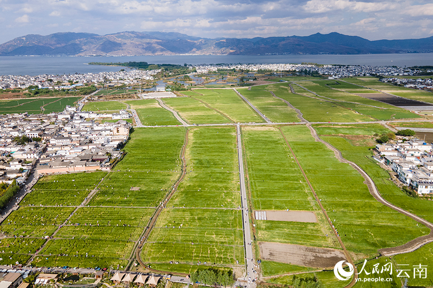 Duan Yufeng, the person in charge of a branch of Dali Tourism Ancient Town Development Co., Ltd., said that since 2017, the company has obtained nearly 3,000 mu (200 hectares) of land through the transfer of land-use rights from locals in the Xizhou old town for ecological planting. The expansive wheat and rice fields blend seamlessly with Erhai Lake, creating a romantic landscape that has drawn a significant influx of visitors to the town.