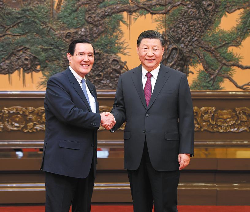 Xi Jinping, general secretary of the Communist Party of China Central Committee, meets with Ma Ying-jeou, former chairman of the Chinese Kuomintang party, in Beijing on Wednesday. [Photo by Ju Peng / Xinhua]