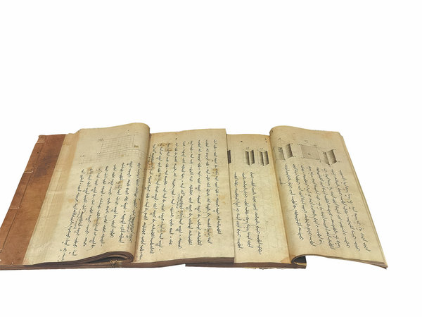 Euclid's Elements of Geometry,handwritten in the Manchu script. [Photo by WANG KAIHAO/CHINA DAILY]