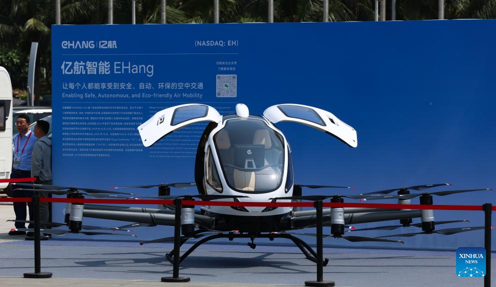 An unmanned aircraft is displayed at the fourth China International Consumer Products Expo (CICPE) in Haikou, capital city of south China's Hainan Province, April 13, 2024. A batch of domestic brands have attracted a lot of visitors at the expo. (Xinhua/Yang Guanyu)