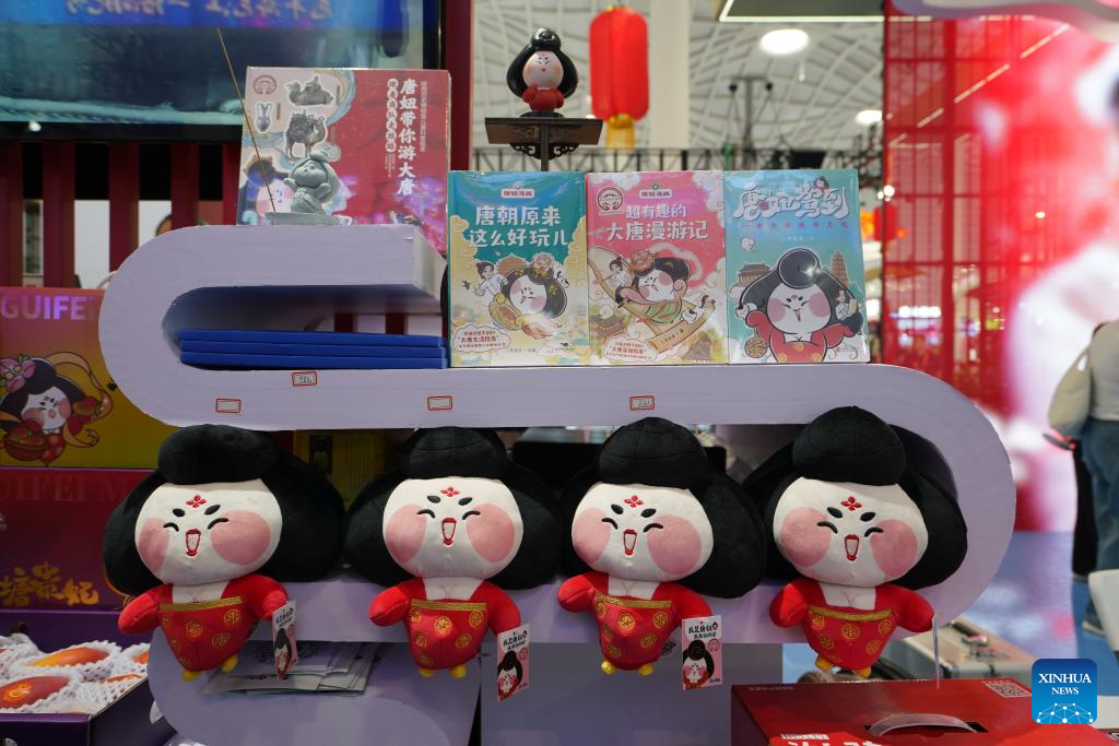 Dolls originated from a female figure of Tang Dynasty (618-907) are displayed at the fourth China International Consumer Products Expo (CICPE) in Haikou, capital city of south China's Hainan Province, April 14, 2024. A batch of domestic brands have attracted a lot of visitors at the expo. (Xinhua/Li Mengjiao)