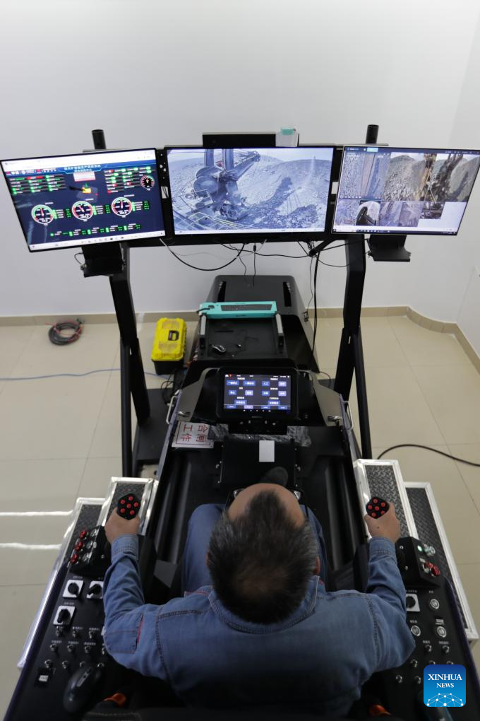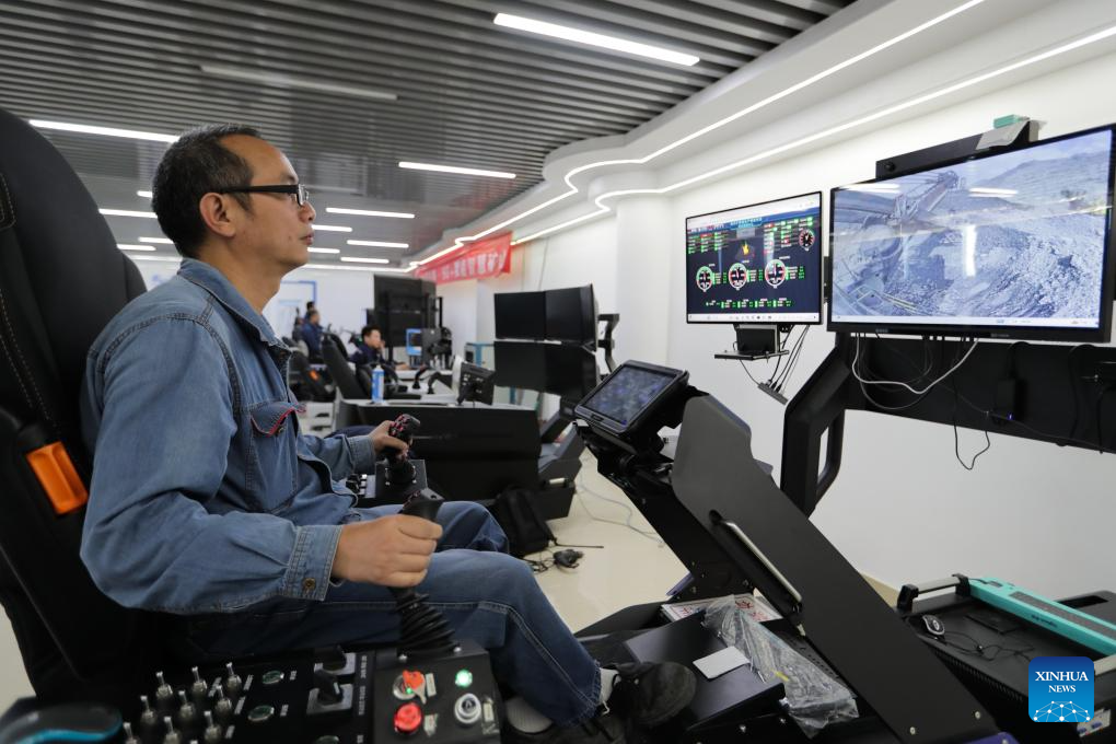 A technician controls electrical shovel remotely at a smart control center of an iron ore mine branch of Pangang Group in Panzhihua City, southwest China's Sichuan Province, April 11, 2024. (Xinhua/Guo Yu)