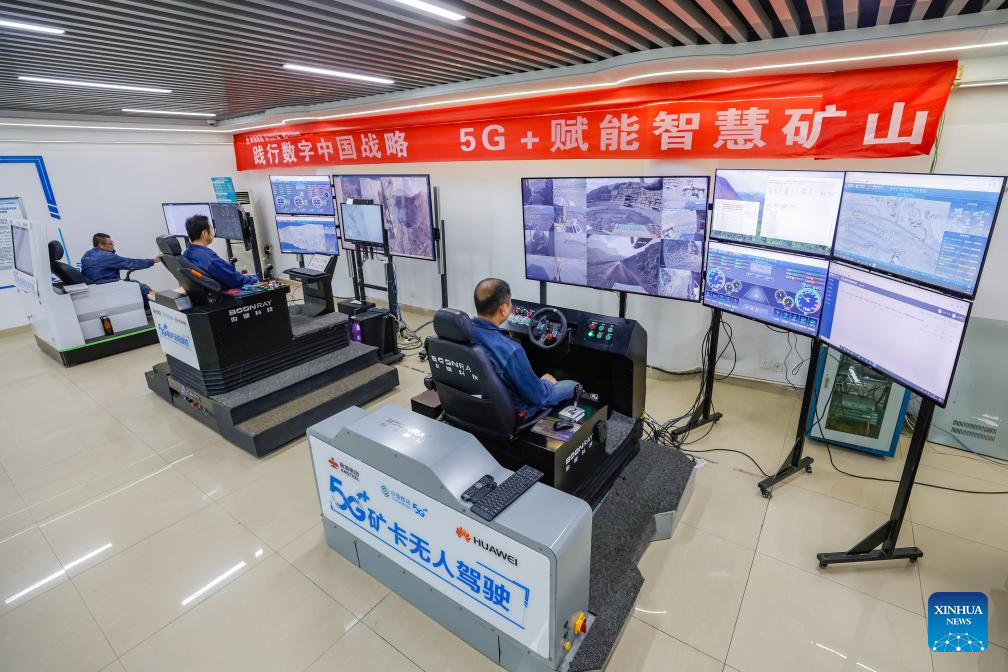 A technician controls electric shovel remotely at a smart control center of an iron ore mine branch of Pangang Group in Panzhihua City, southwest China's Sichuan Province, April 11, 2024. (Xinhua/Guo Yu)