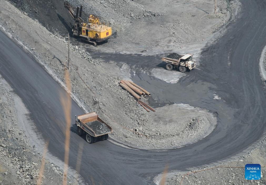 An aerial drone photo taken on April 11, 2024 shows a view of an iron ore mine branch of Pangang Group in Panzhihua City, southwest China's Sichuan Province. (Xinhua/Shen Bohan)
