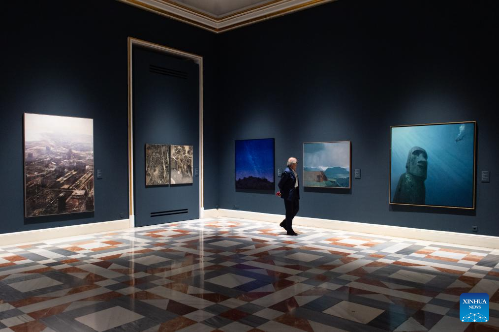 A visitor takes photos at an exhibition featuring contemporary oil paintings from China and Spain at Palacio Real, in Madrid, Spain, on April 12, 2024. (Photo by Gustavo Valiente/Xinhua)