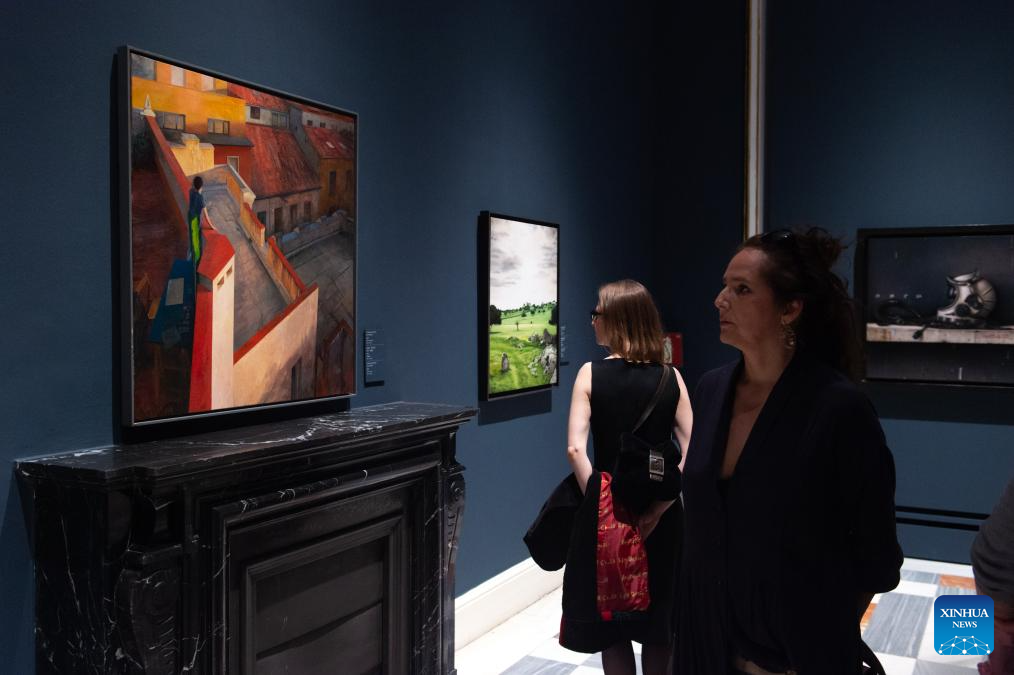 Visitors view an exhibition featuring contemporary oil paintings from China and Spain at Palacio Real, in Madrid, Spain, on April 12, 2024. (Photo by Gustavo Valiente/Xinhua)