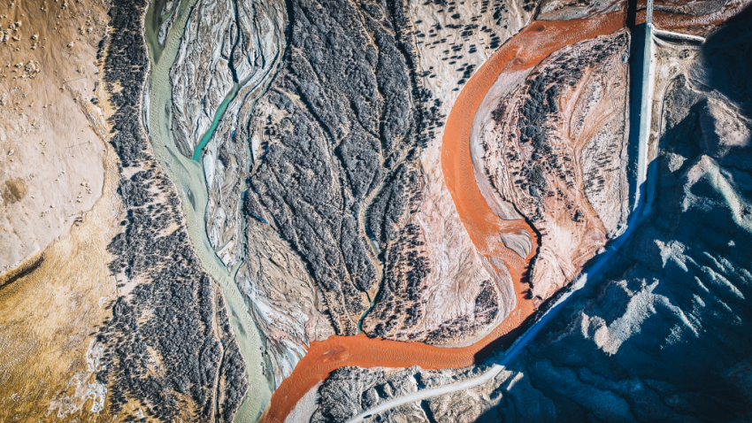 The convergence of the two rivers in Xiangjia township, Dulan county creates a distinct landscape, as the two rivers look entirely different when viewed from above.