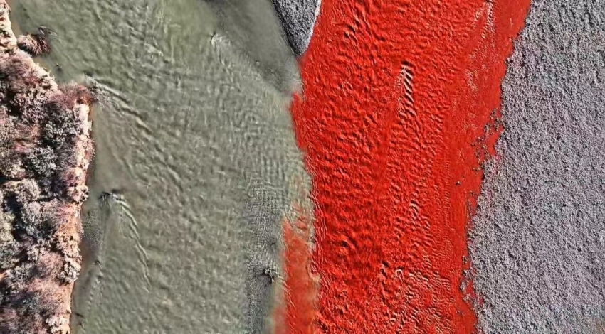 The Wulanwusu River, which flows from Alake Lake located on the southern edge of the Qaidam Basin, is also known as the "red water river" due to its passage through a region with red-bed landform.