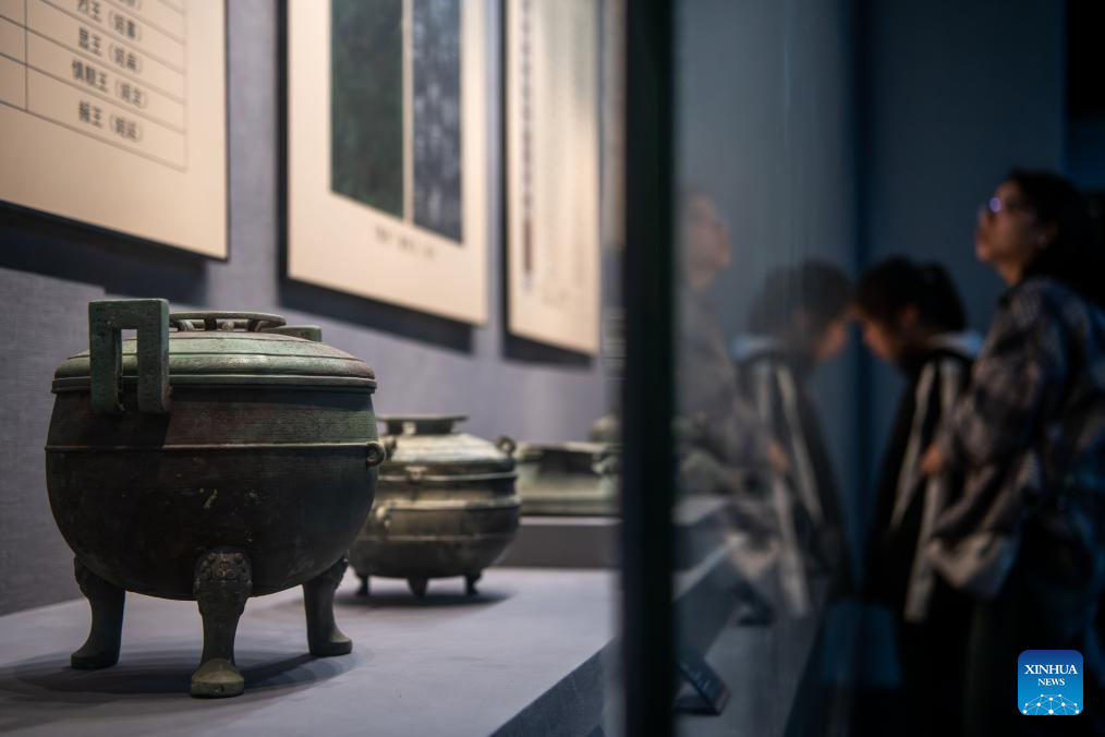 People visit Jingzhou Museum in the city of Jingzhou, central China's Hubei Province, April 13, 2024. Many citizens and tourists chose to spend their leisure time at the museum on Saturday. (Xinhua/Wu Zhizun)