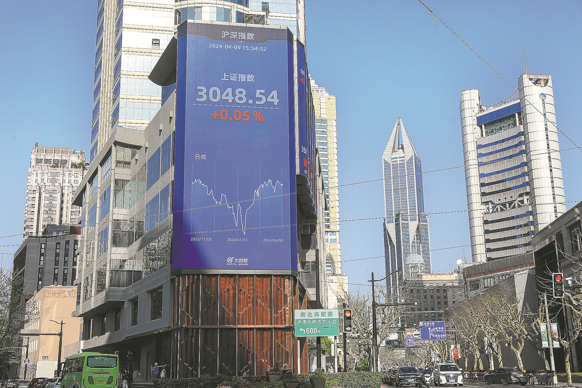 A billboard in Shanghai shows the level of the Shanghai Composite Index. CHINA DAILY