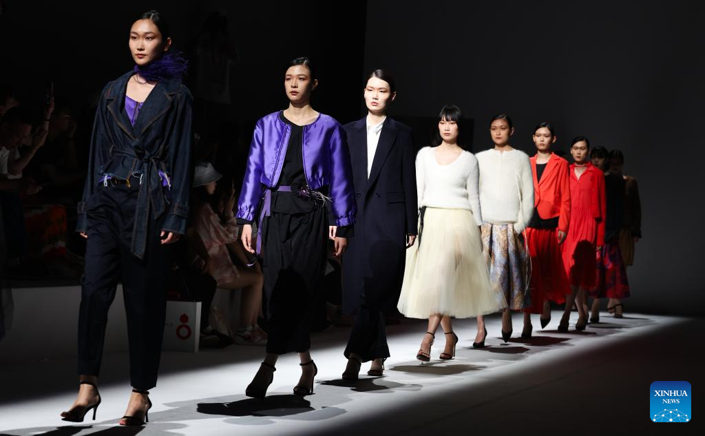 Models present creations during a fashion show at the fourth China International Consumer Products Expo (CICPE) in Haikou, capital city of south China's Hainan Province, April 15, 2024. The Expo, which started Saturday and lasts till April 18, is China's only national-level exhibition featuring consumer products and also the largest consumer expo in the Asia-Pacific region. (Xinhua/Yang Guanyu)