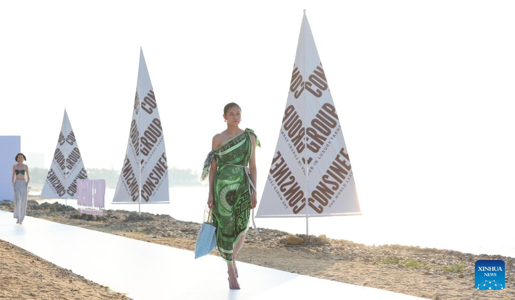 Models present creations during a fashion show at the fourth China International Consumer Products Expo (CICPE) in Haikou, capital city of south China's Hainan Province, April 15, 2024. The Expo, which started Saturday and lasts till April 18, is China's only national-level exhibition featuring consumer products and also the largest consumer expo in the Asia-Pacific region. (Xinhua/Li Mengjiao)