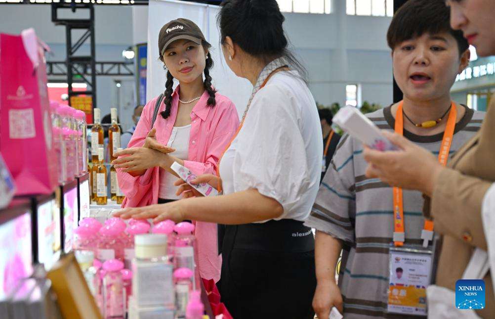 A visitor selects cosmetic products at the fourth China International Consumer Products Expo (CICPE) in Haikou, capital city of south China's Hainan Province, April 15, 2024. The Expo, which started Saturday and lasts till April 18, is China's only national-level exhibition featuring consumer products and also the largest consumer expo in the Asia-Pacific region. (Xinhua/Yang Guanyu)