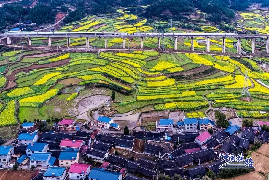 Vast expanses of rapeseed fields have turned into enchanting seas of gold in many regions across China, especially central China's Hunan Province and south China's Guangdong Province, creating breathtaking scenes that bring immense pleasure to passengers traveling by train.