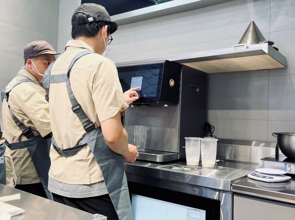 While observing the tea-making machines of Chinese new-style tea brand HEYTEA in the exhibition area of Shenzhen city in south China's Guangdong Province, a buyer from Singapore expressed surprise at the good taste of Chinese tea made with smart devices, finding it comparable to handcrafted tea.