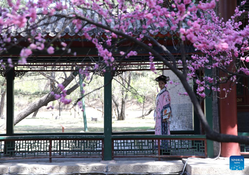 A woman is pictured at the Imperial Summer Resort in Chengde, north China's Hebei Province, April 17, 2024. (Photo by Liu Huanyu/Xinhua)