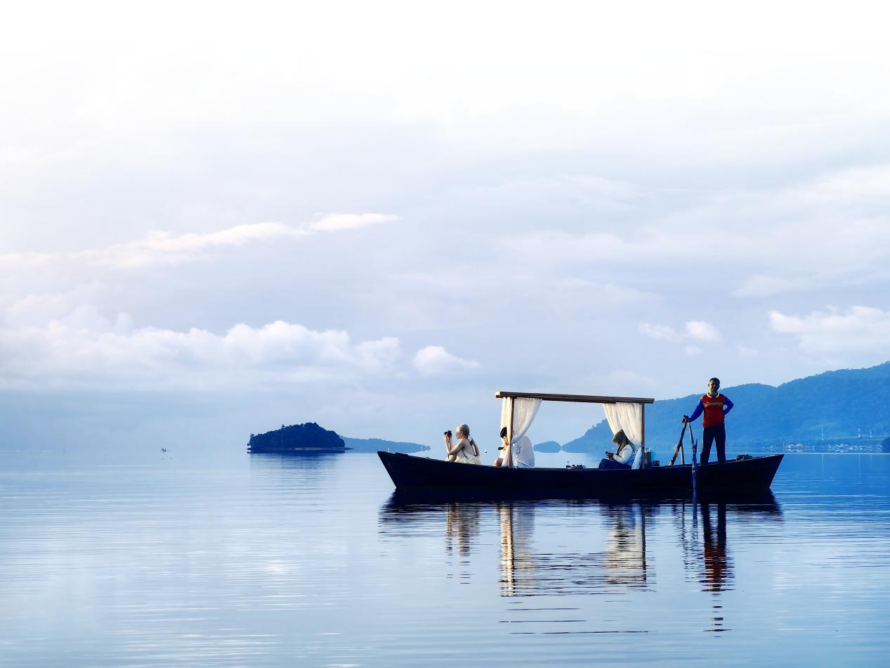 Chinese tourists take photos of the sunrise on a small boat near Ko Lanta, Krabi in southern Thailand. (People's Daily/Zhang Jinruo)
