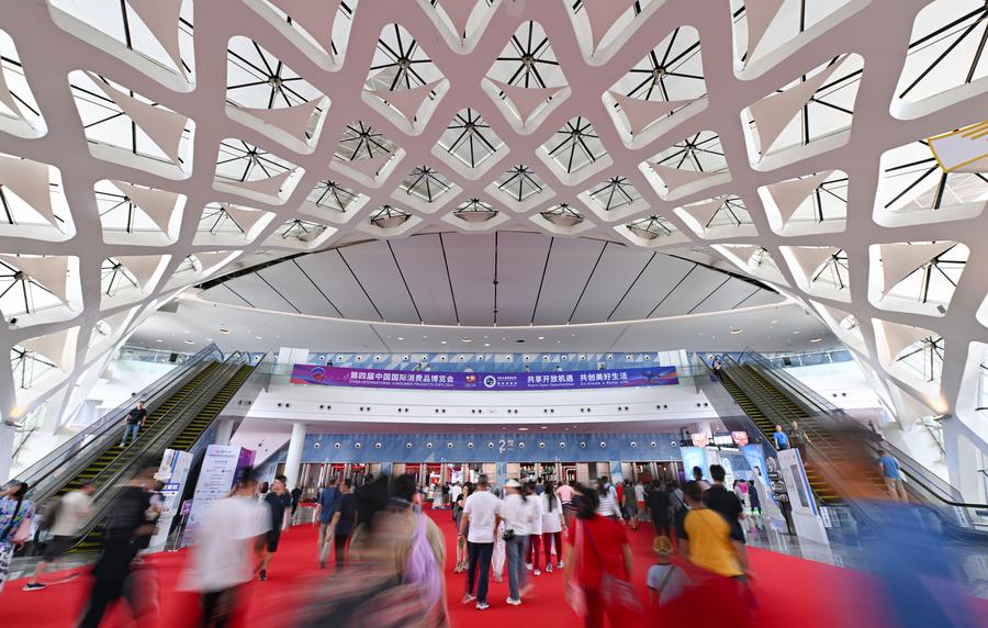 HAIKOU, April 18 (Xinhua) -- The fourth China International Consumer Products Expo, which was held from April 13 to 18, broke records for scale, as well as for numbers of new products, visitors and exhibited brands.