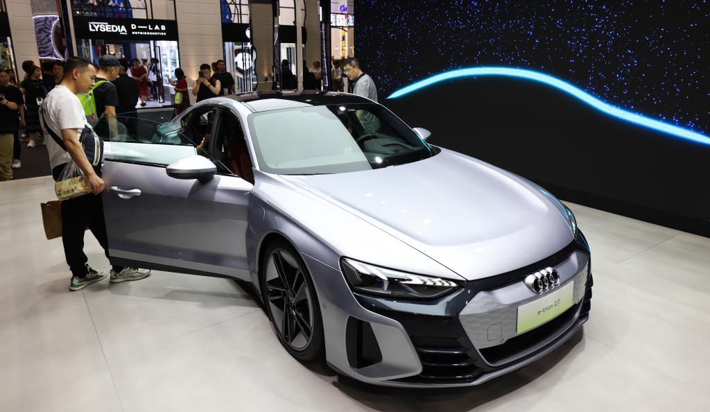 A visitor looks at an Audi vehicle during the fourth China International Consumer Products Expo in Haikou, capital city of south China's Hainan Province, April 17, 2024. (Xinhua/Yang Guanyu)