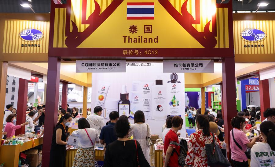 Visitors look at products from Thailand at the fourth China International Consumer Products Expo (CICPE) in Haikou, capital city of south China's Hainan Province, April 16, 2024. (Xinhua/Yang Guanyu)