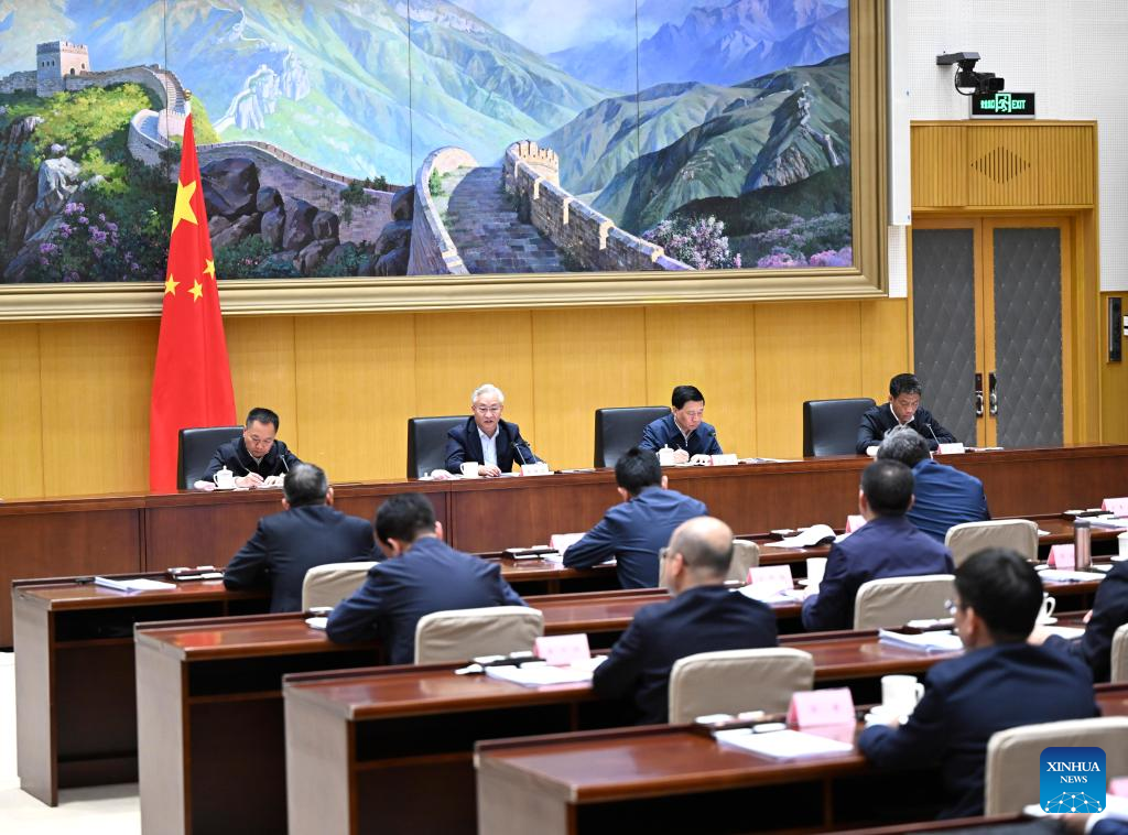 Chinese Vice Premier Zhang Guoqing, also a member of the Political Bureau of the Communist Party of China Central Committee, speaks at a national video conference on flood control and drought relief work in Beijing, capital of China, April 18, 2024. (Xinhua/Yan Yan)