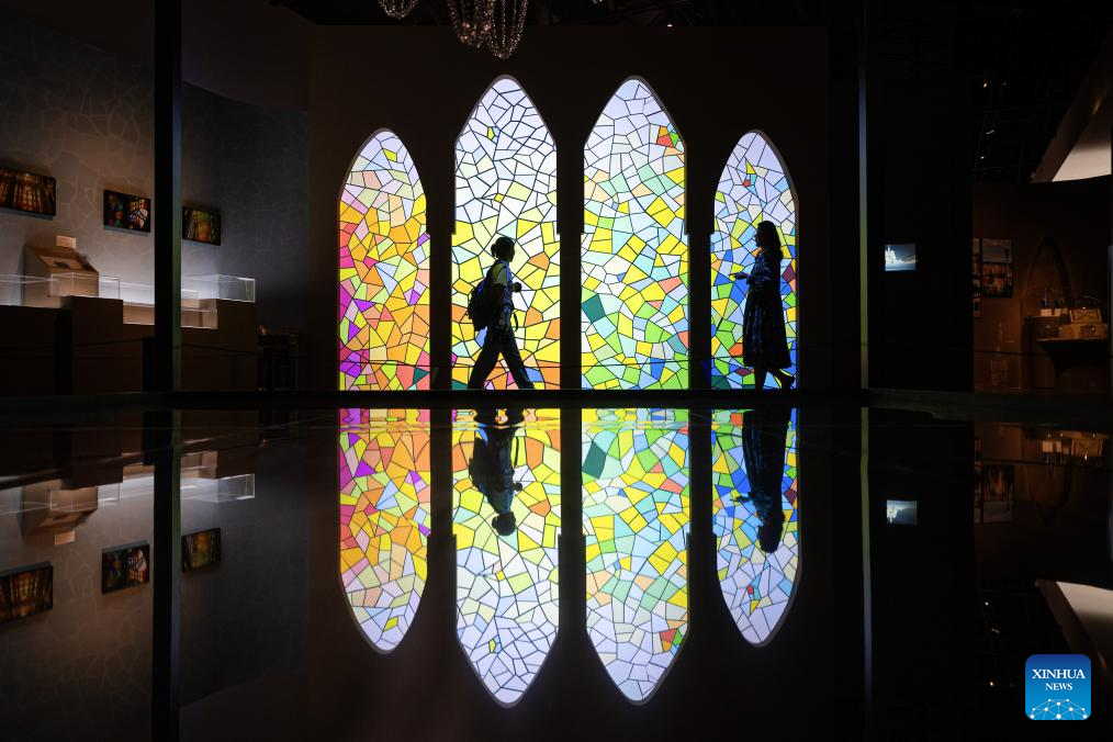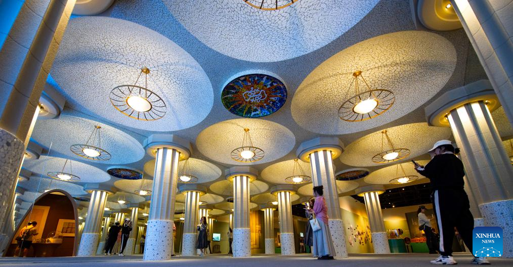 People visit an exhibition titled "Gaudi: Moment is Eternity" in Wuhan, central China's Hubei Province, April 18, 2024. Opened here on Thursday, the exhibition will last until October 20. (Xinhua/Hu Jingwen)