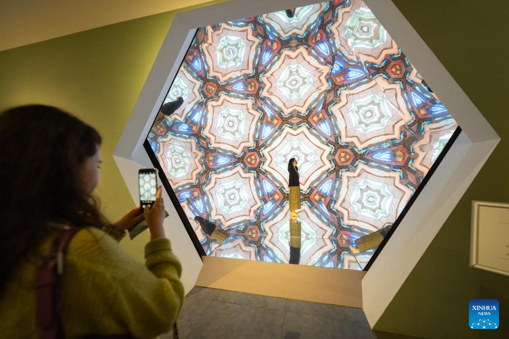 Visitors take photos at an exhibition titled "Gaudi: Moment is Eternity" in Wuhan, central China's Hubei Province, April 18, 2024. Opened here on Thursday, the exhibition will last until October 20. (Xinhua/Xiao Yijiu)