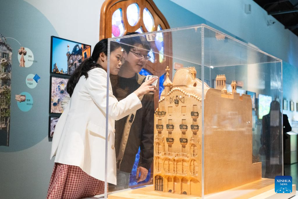 People view an exhibit at an exhibition titled "Gaudi: Moment is Eternity" in Wuhan, central China's Hubei Province, April 18, 2024. Opened here on Thursday, the exhibition will last until October 20. (Xinhua/Hu Jingwen)