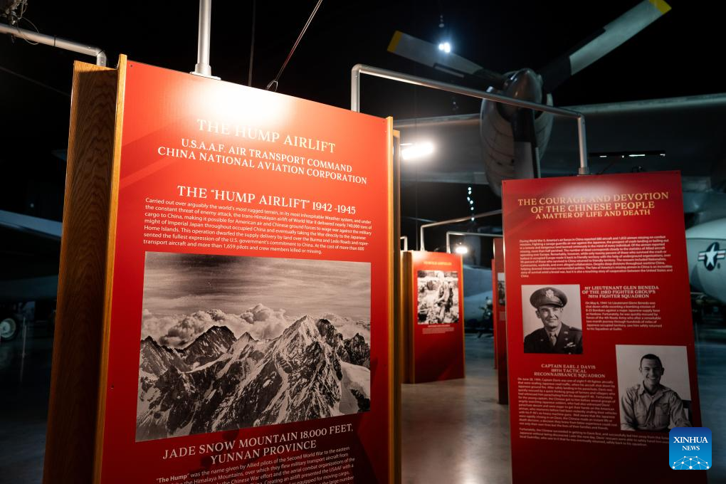 A photo exhibition commemorating the Flying Tigers and Doolittle Raiders, Americans who fought Japan in World War II in cooperation with the Chinese people, is held at the National Museum of the U.S. Air Force in Dayton, Ohio, the United States, April 18, 2024. The half-year-long exhibition recounts the stories of the Flying Tigers and Doolittle Raiders with around 100 photos and detailed narrations. (Xinhua/Liu Jie)