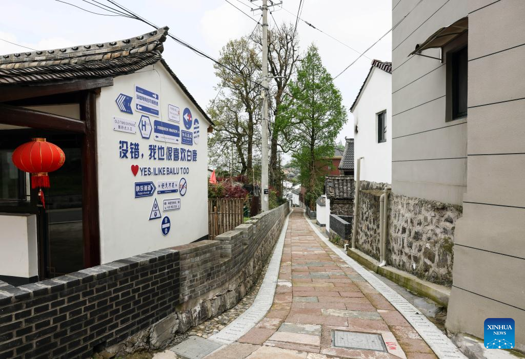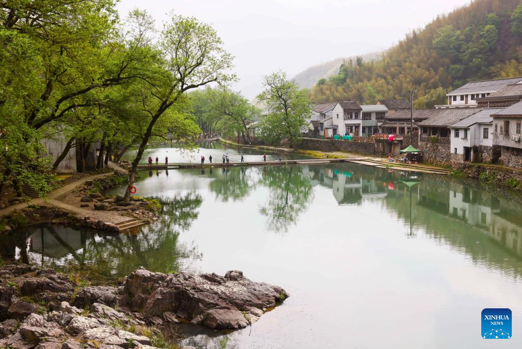Tourists visit Zhongcun Village of Luting Township, Yuyao City, east China's Zhejiang Province, April 13, 2024. (Xinhua/Lan Hongguang)