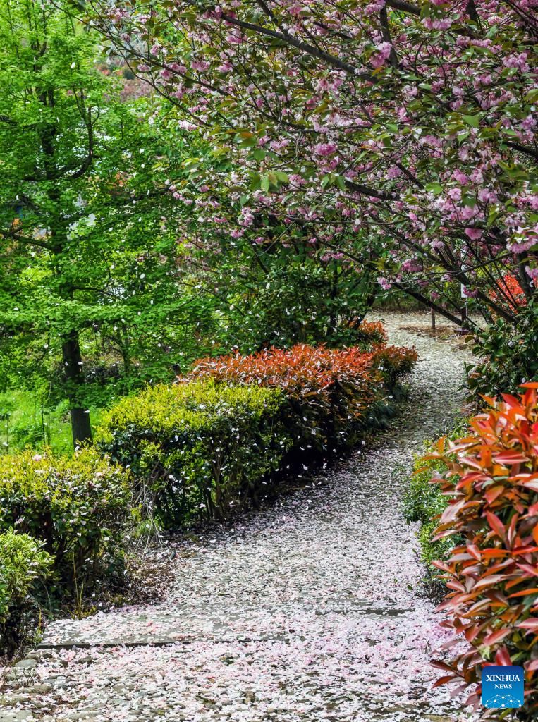 Cherry blossoms are pictured at a scenic area in Luting Township, Yuyao City, east China's Zhejiang Province, April 13, 2024. (Xinhua/Lan Hongguang)