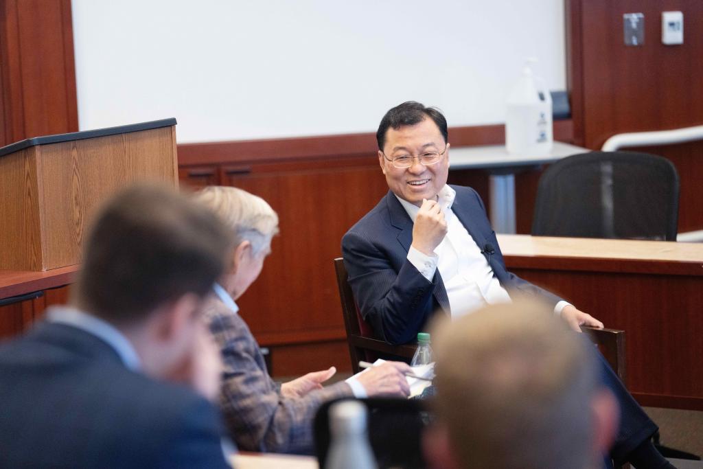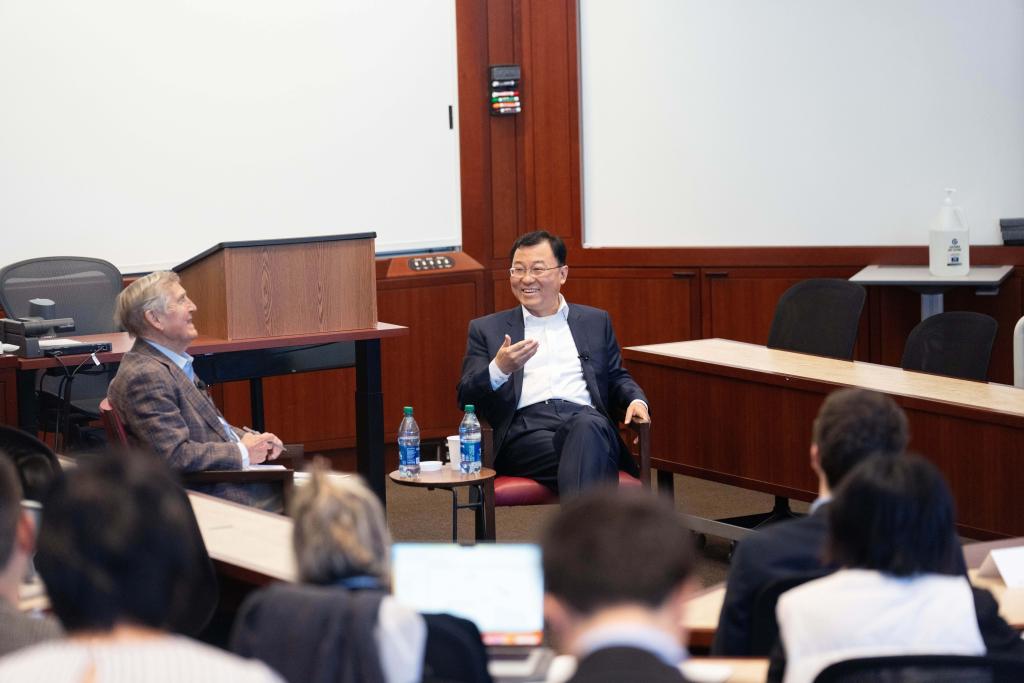Chinese Ambassador to the United States Xie Feng speaks during a fireside chat with Harvard Kennedy School's founding dean, Graham Allison, at Harvard University in Cambridge, Massachusetts, the United States, April 19, 2024. (Xinhua/Liu Jie)