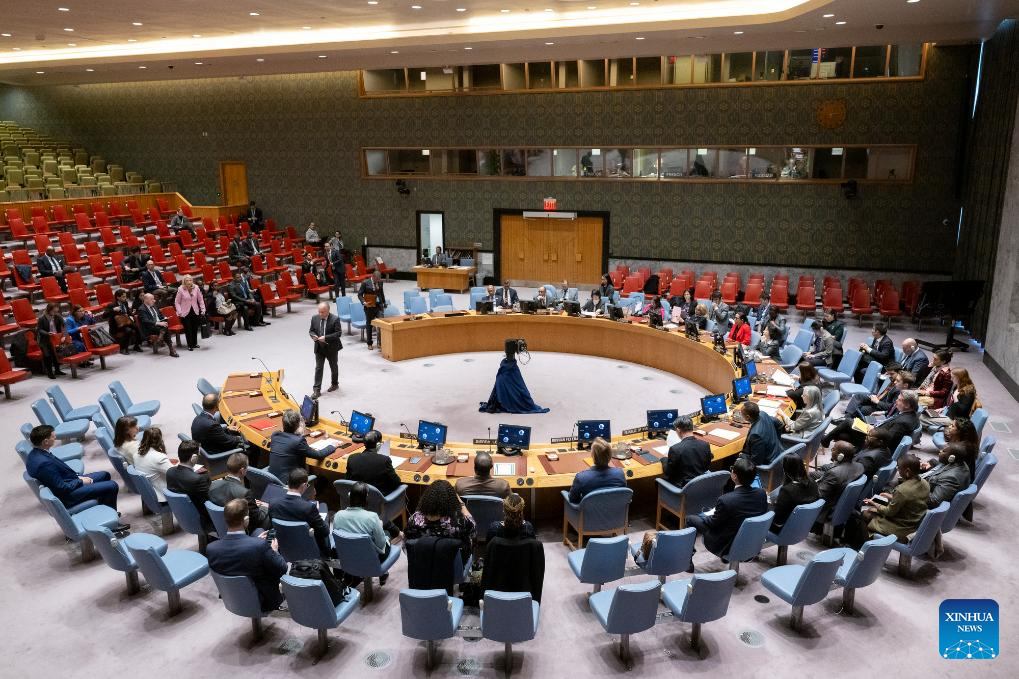 The UN Security Council holds a meeting on the situation in Haiti at the UN headquarters in New York, on April 22, 2024. The top UN envoy for Haiti Maria Isabel Salvador on Monday stressed the need for improved security in the country to allow for further political progress. (Manuel Elias/UN Photo/Handout via Xinhua)