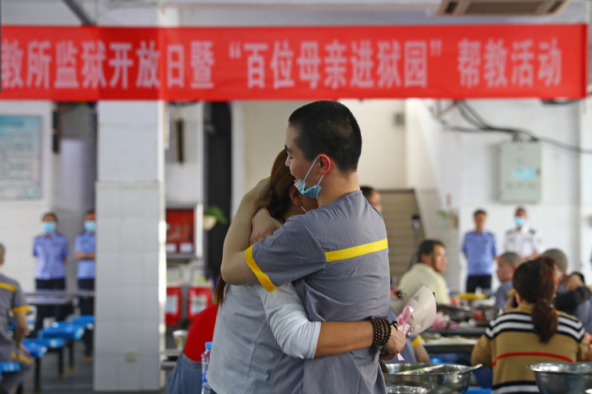 A juvenile offender hugs his mother at a rehabilitation institution in Nanchang, Jiangxi province. LIU ZHANKUN/CHINA NEWS SERVICE
