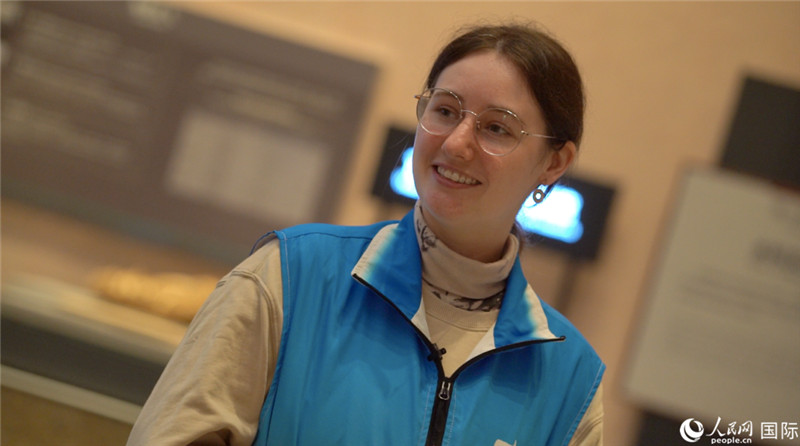 Photo shows Emma Chen, a bilingual volunteer tutor at the Liangzhu Museum in Hangzhou, east China's Zhejiang Province. (People's Daily Online/Yuan Meng)