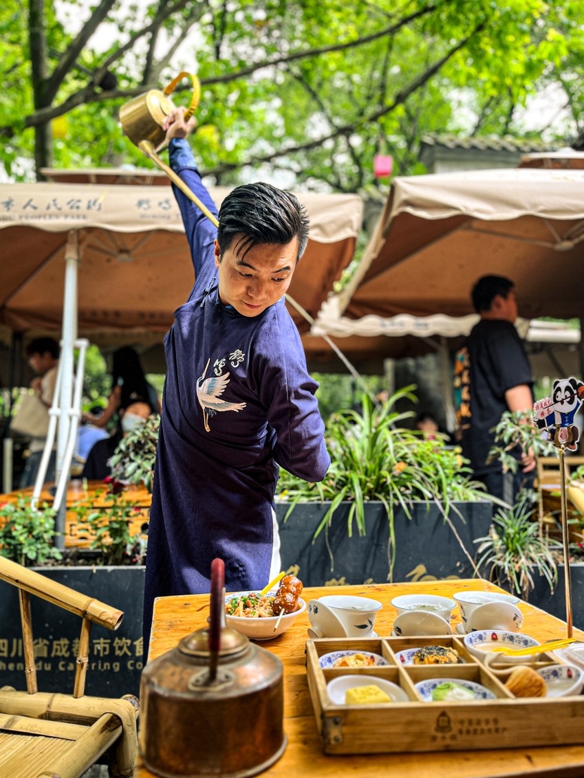 A tea master performs tea art at a century-old teahouse inside Chengdu People's Park in Chengdu, capital of southwest China's Sichuan Province. (People's Daily Online/Xian Jiangnan)