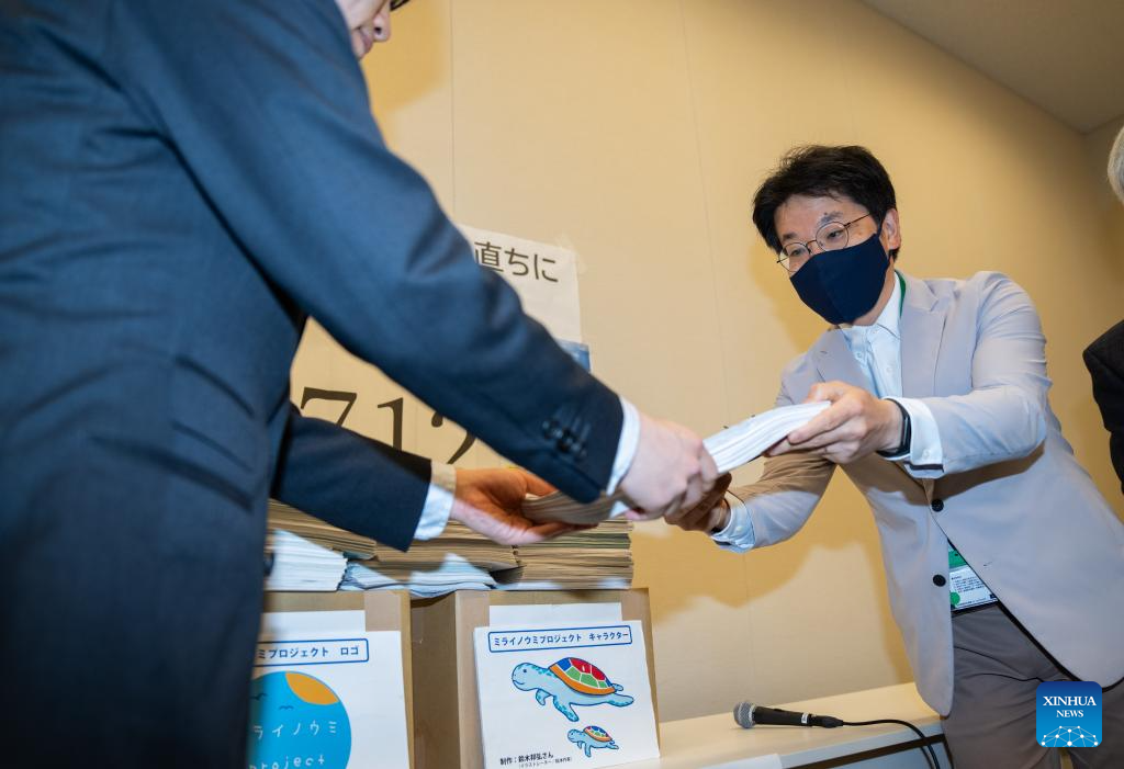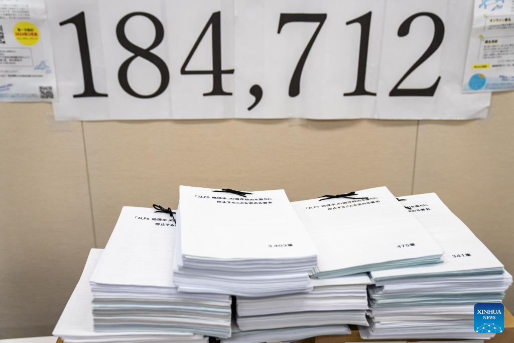 TOKYO, April 24 (Xinhua) -- Representatives from Japanese civic groups on Wednesday submitted over 180,000 signatures from local citizens to the Japanese government, urging both the government and Tokyo Electric Power Company (TEPCO) to immediately halt the ocean discharge of nuclear-contaminated water from the crippled Fukushima Daiichi Nuclear Power Plant.