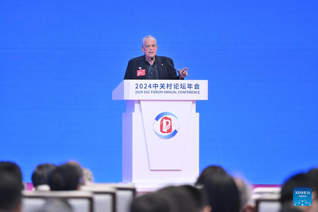 Stephen Perry, president emeritus of Britain's 48 Group Club, speaks at the 2024 Zhongguancun Forum (ZGC Forum) Annual Conference in Beijing, capital of China, April 25, 2024. (Xinhua/Li Xin)