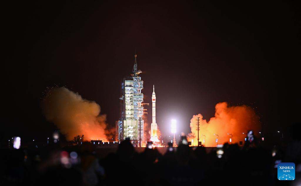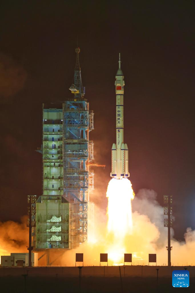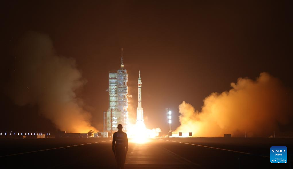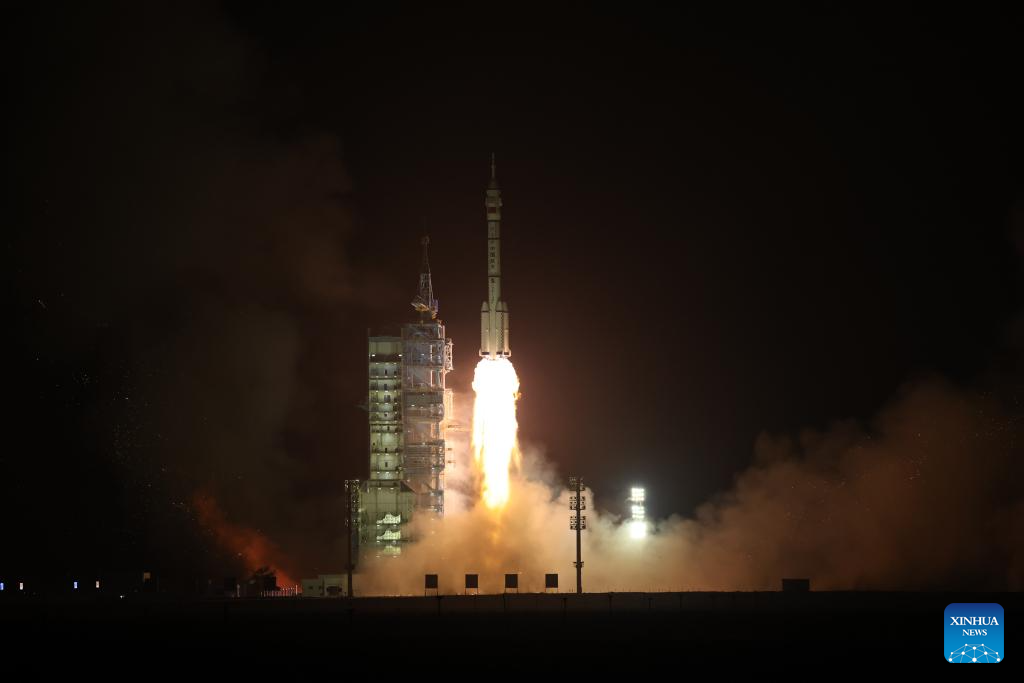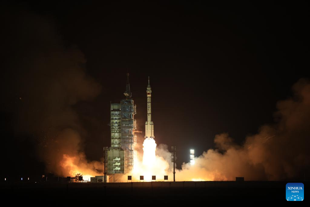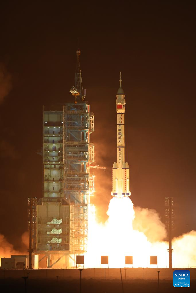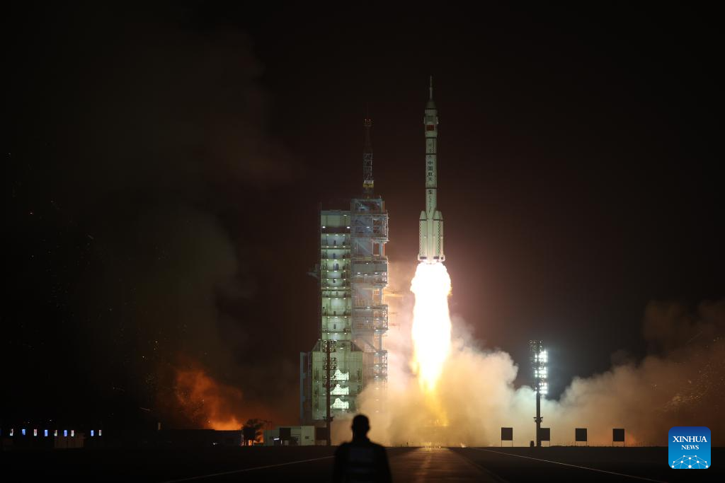 The Shenzhou-18 manned spaceship, atop a Long March-2F carrier rocket, is launched from the Jiuquan Satellite Launch Center in northwest China, April 25, 2024. (Xinhua/Lian Zhen)