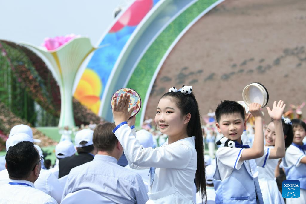 This photo taken on April 26, 2024 shows a performance at the opening ceremony of the International Horticultural Exhibition 2024 Chengdu in Chengdu, southwest China's Sichuan Province. (Xinhua/Jiang Hongjing)
